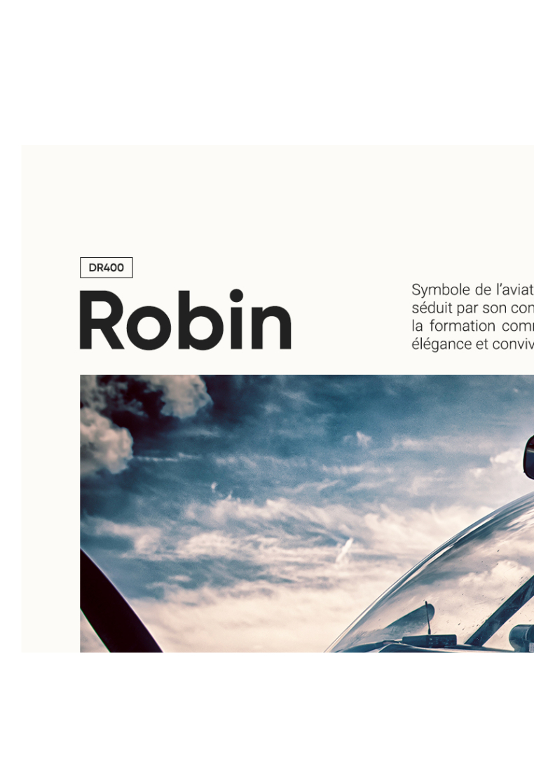 Plongez dans l’univers légendaire du DR400. Symbole de l’aviation française, le Robin DR400 séduit par son confort et sa finesse. Conçu pour la formation comme pour le voyage, il incarne élégance et convivialité.